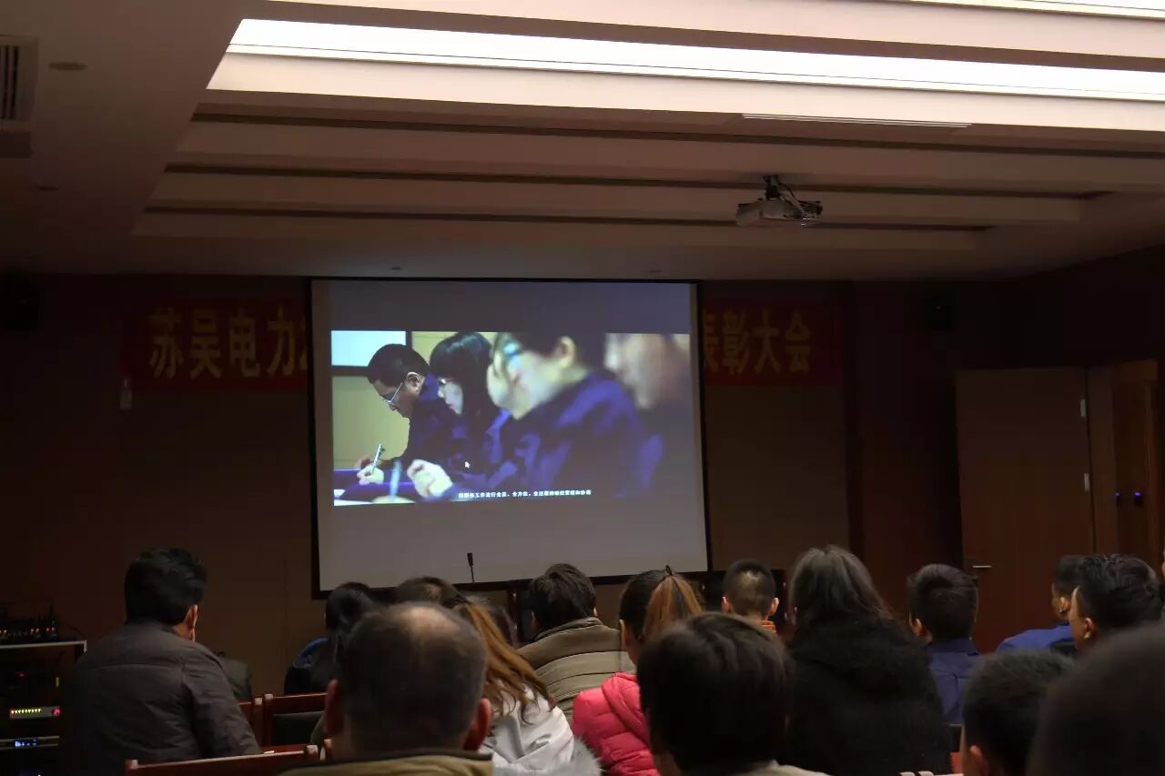 最后被评选为班组先进个人的王远同志代表先进个人进行了发言。整个大会气氛热烈、庄重,各环节有条不紊,会场秩序井然。会后,参会人员一同观赏了苏吴电力宣传片。